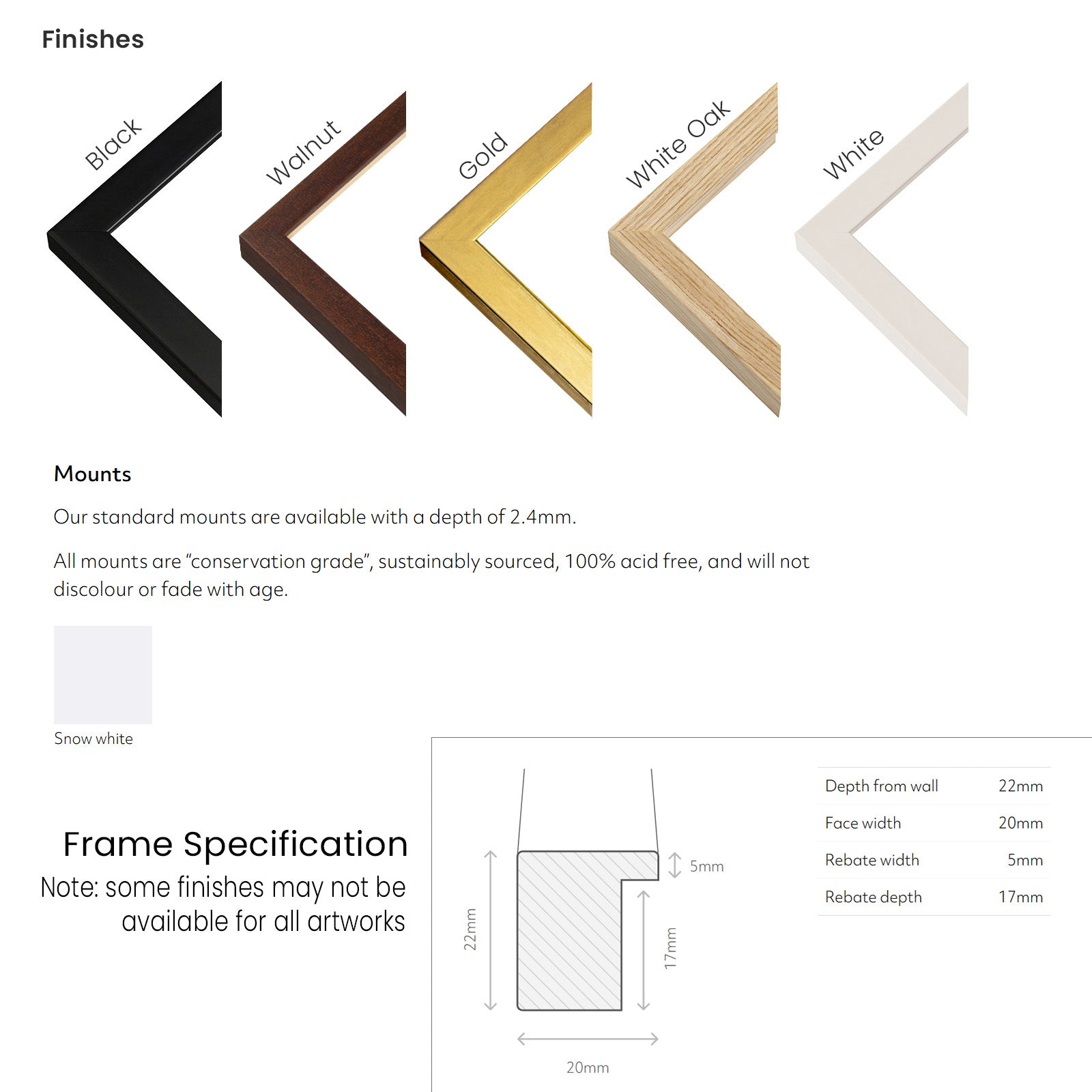- Available framed & mounted (ready to hang) or unframed (see below)